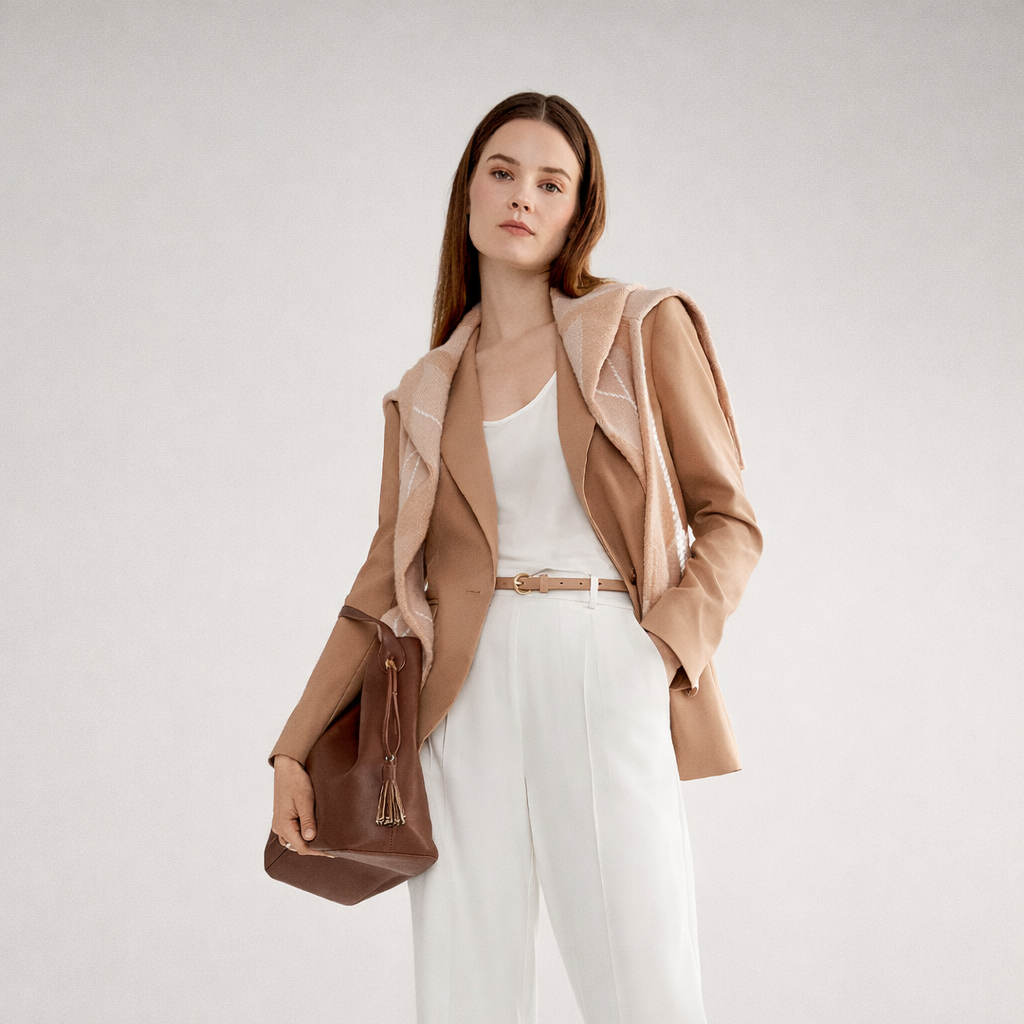 Sleeve, shoulder, and length proportions designed with petite frames in mind